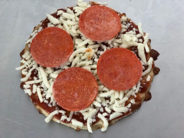 • Pasta de tomate, pepperoni  y queso mozzarella.